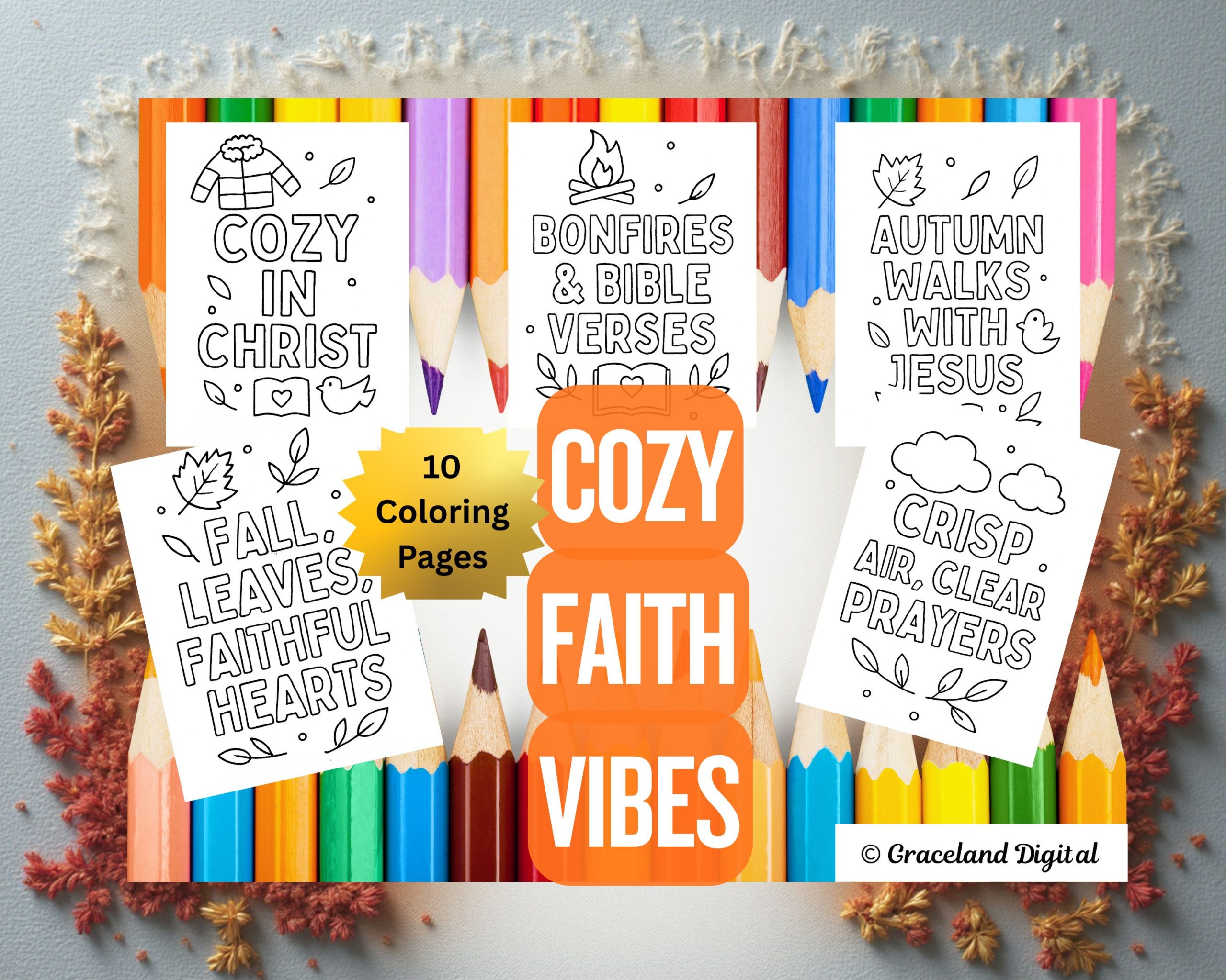 That deep need for calm and connection is the heart behind Graceland Digital’s Cozy Faith Vibes coloring book. It’s a collection of faith-based coloring pages specifically designed to bring scripture to life through cozy illustrations and creative calm.
